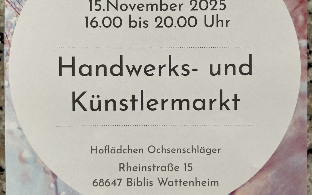 Am Samstag, den 15. November 2025, lädt das Hoflädchen Ochsenschläger in Biblis-Wattenheim herzlich zum stimmungsvollen Handwerks- und Künstlermarkt ein. Von 16 bis 20 Uhr verwandeln sich Hof und Scheune in einen Ort voller kreativer Ideen, handgemachter Unikate und regionaler Köstlichkeiten.